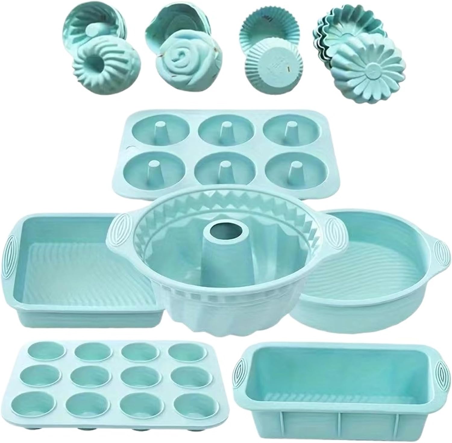Material: SiliconeType: 30-Piece Baking Set, Muffin Cup, Cake Mold, Toast PanFeature: Easy Release, Easy Clean, Reusable, VersatileApplication: Home Baking, DIY Pastry MakingUse: Muffins, Cakes, Toast, Baked Desserts