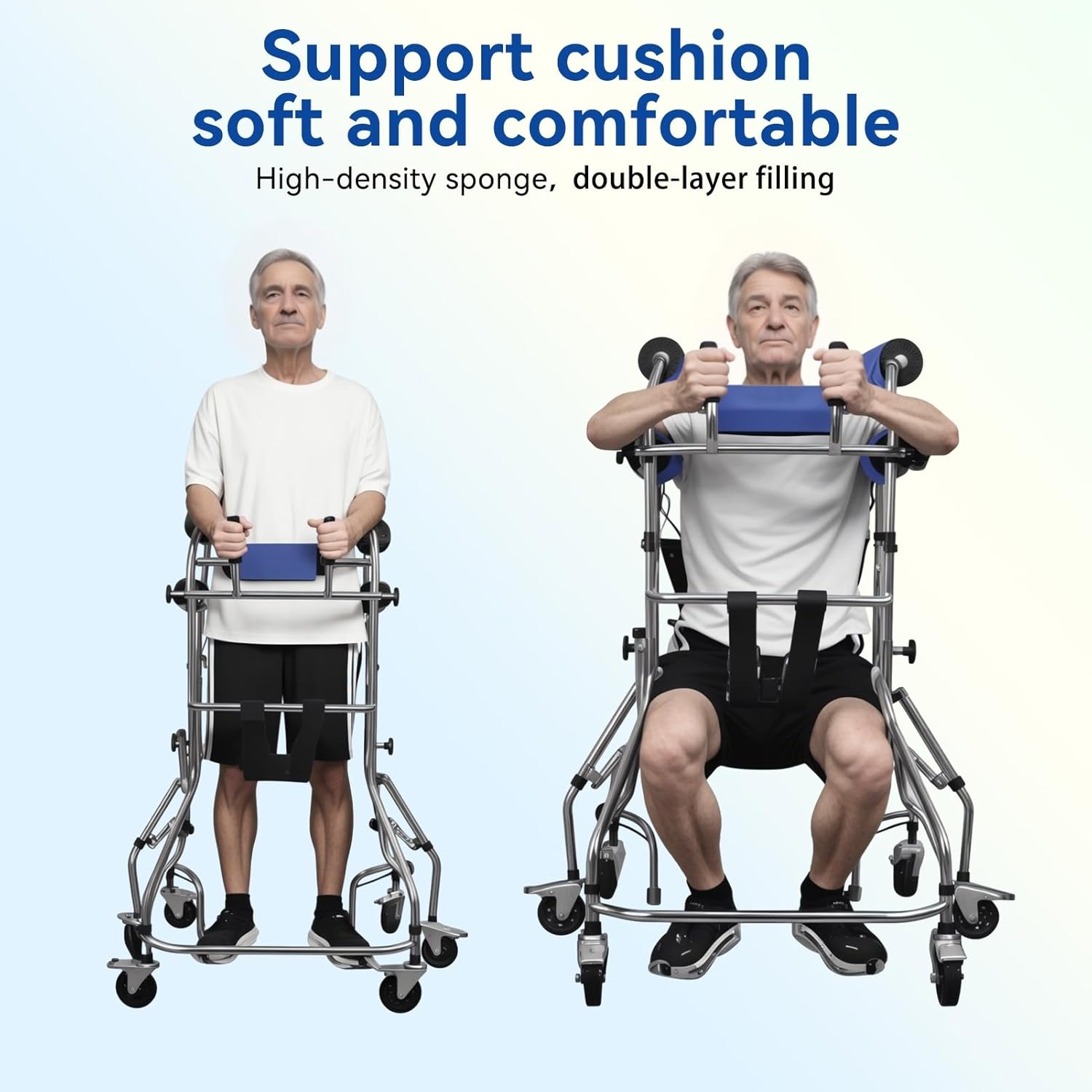 Description: Width & Height Adjustable: The height and width can be adjusted by bolts to adapt to people of different heights and body widths. 6 Wheels Design: The 2 anti-rollover wheels and 4 casters design prevents rollover and backward tilt, making it safer and more convenient to use. The walker is extremely strong, stable, and safe with a thickened stainless steel construction. Can support a person weighing 100kg. High-Quality Material: The standing walkers for seniors is made of thickened stainless steel pipe, with good load-bearing. The armrest and cushion are designed with high-density sponge, which can absorb sweat and prevent slip, and can be disassembled at the same time. High Stability: With standing walker, you'll always be stable. Never worry about uneven lengths of legs on your adult walker. Can be moved on any surface. Anti-slip rubber tips ensure stability for daily use. Walking Aid for Adults and The Elderly: The wheel sliding speed is adjustable and the braking function is safer. Ideal for hemiplegia and postoperative rehabilitation. Item Name: Adult Walker Material: Stainless Steel Bearing: 100kg Features: Height Width Adjustable, Anti-Tilt Bracket, with Casters Size Details: Adult Walker: L: 110cm/43.31", W: 91cm/35.83", H: 140cm/55.12" (Approx.) Underarm Inner Width: 43cm/16.94" (Approx.) Distance between Left to Right Wheels: 60cm/23.64" (Approx.) Distance between Side Wheels: 98cm/38.61" (Approx.) Distance between Front to Backward Wheels: 65cm/25.61" (Approx.) Wheel Distance: 10cm/3.94" (Approx.) Height: 115cm-140cm/45.31"-55.16" (Approx.) Notes: Due to the light and screen setting difference, the item's color may be slightly different from the pictures. Please allow slight dimension difference due to different manual measurement. Package Includes: 1 x Adult Walker 1 x English User Manual