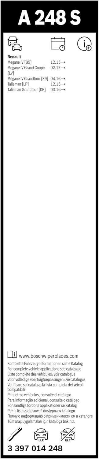 This product: Bosch 3397014248 is new and originalTechnical details:: Excellent Wiping Performance. -Type - Soft (very high perf.) -[side assembly: