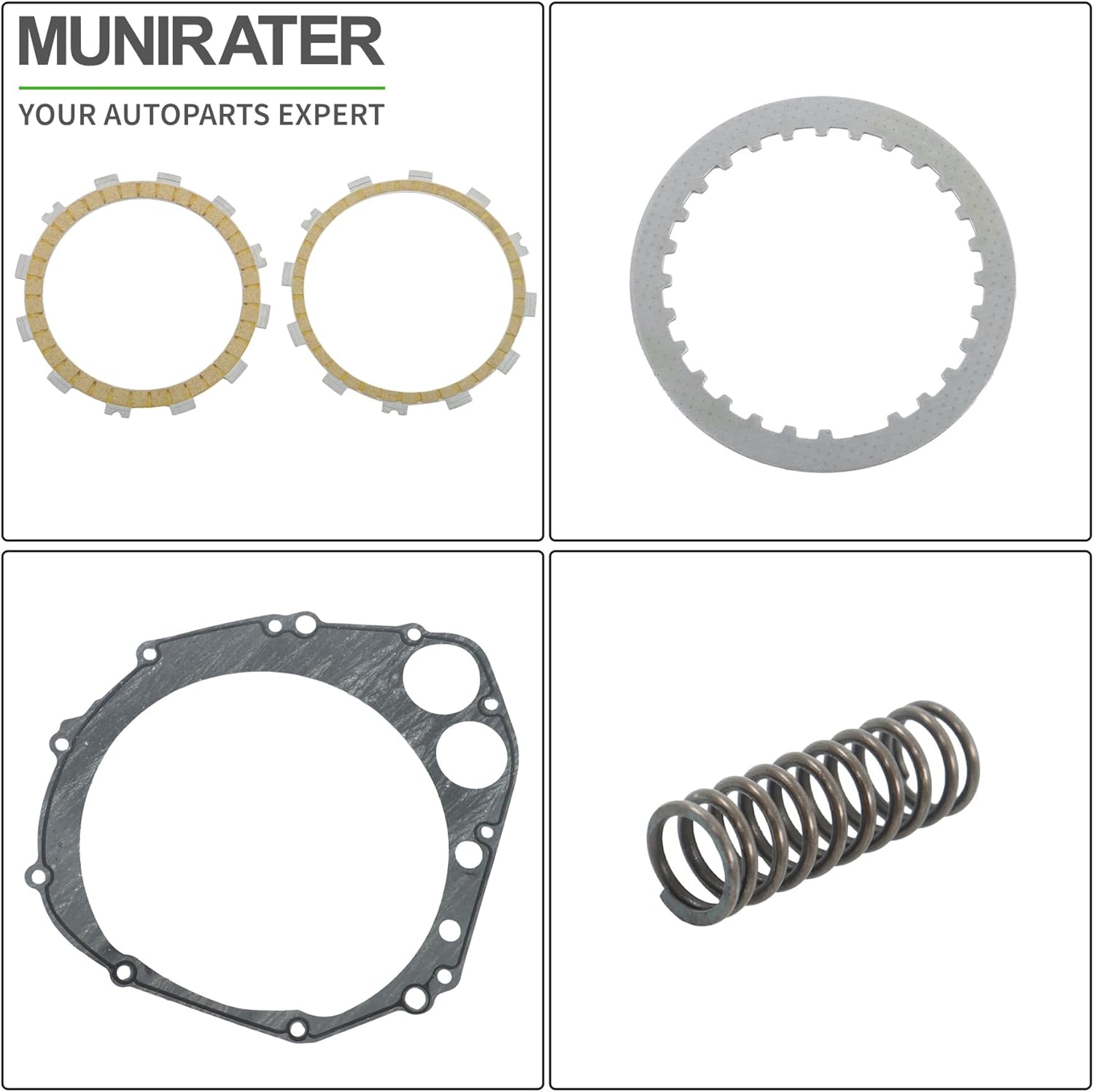 Clutch Plate KitReplacement forReplacement for GSXR1000 2007-2008Replacement for GSXR 1000 2007-2008Replacement for Part Number21400-36871Features- Direct replacement and easy installation, using good quality material- Smooth surface, size and friction performance meet the requirements of useNotePlease carefully check the appearance and shape of the product before placing an order, and verify that it is the model you needPackage Includes1x Clutch plate kit (parts as shown)