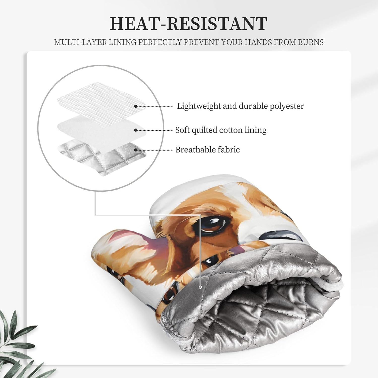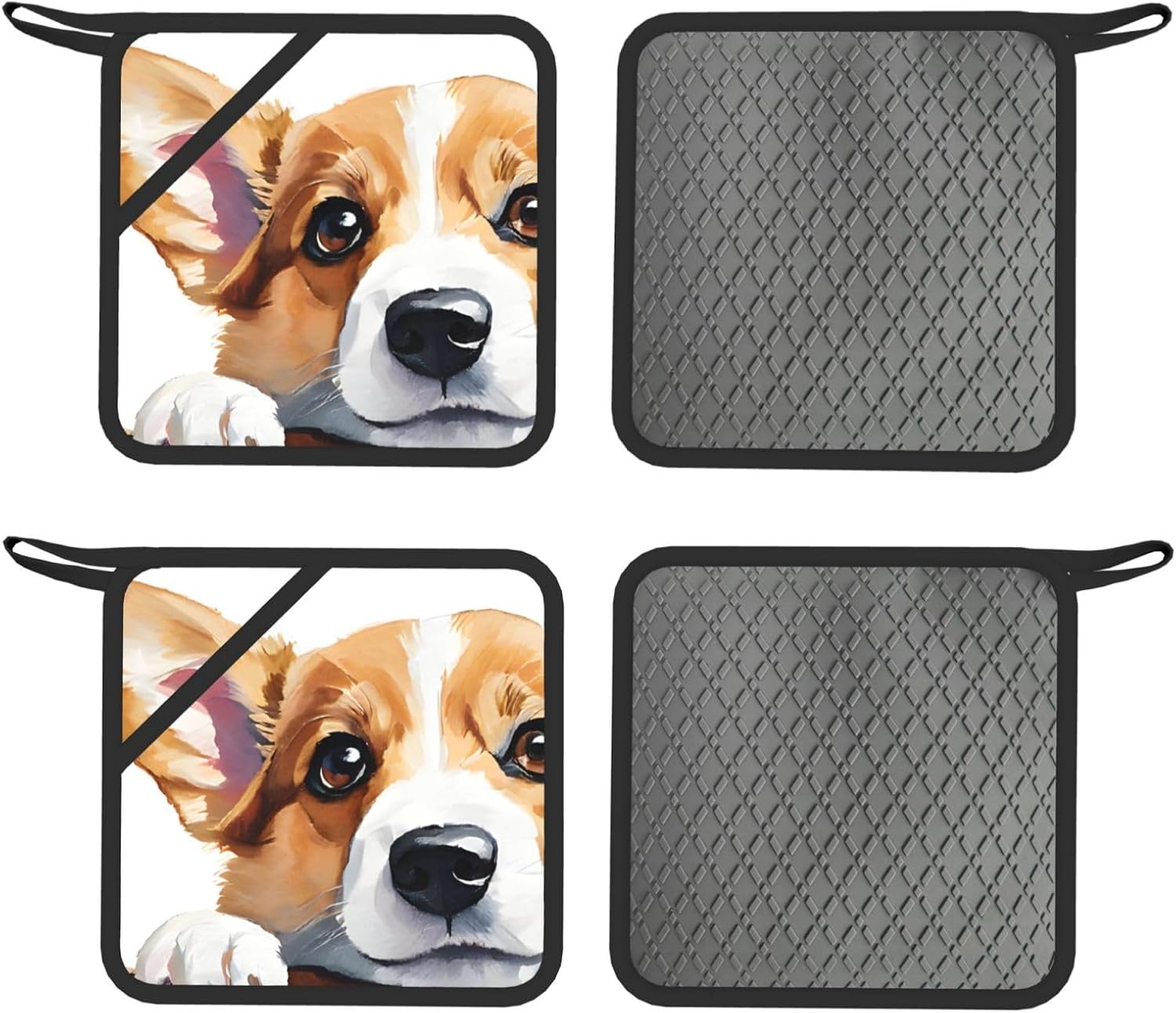 Upgrade your kitchen essentials with this oven mitts and pot holders set, designed for safe and comfortable handling of hot cookware. The set includes 2 heat-resistant oven mitts and 2 pot holders with pockets, making it a practical choice for daily cooking, baking, grilling, and microwave use.Crafted from high-quality polyester with thick insulated padding, these kitchen gloves deliver reliable heat protection up to 260°C. The soft quilted lining ensures comfort and flexibility, while the silicone palm design enhances grip and control when handling hot pots, pans, and trays.The non-slip silicone surface provides added stability, giving you confidence when moving hot cookware. Waterproof inner and outer layers make cleaning simple—just wipe clean or hand wash and air dry for easy care.Each piece features a convenient hanging loop for organized storage and quick access in your kitchen. Stylish and functional, this oven mitts set also makes a thoughtful gift for family and friends on holidays, housewarmings, and special occasions.