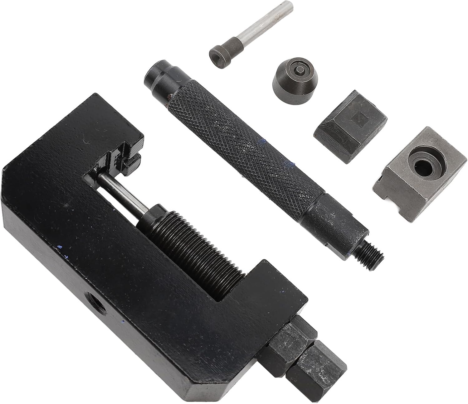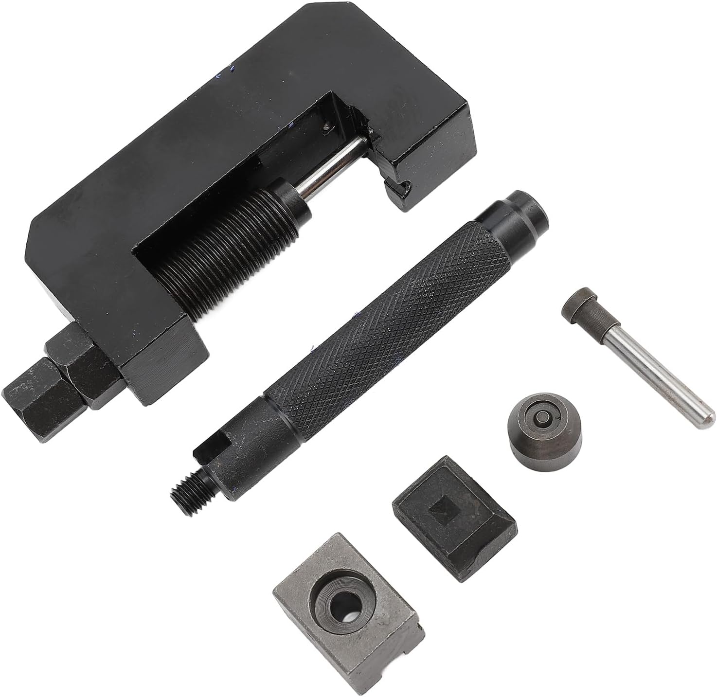 Specification Item Type: Chain Installation Removal Tool Material: Metal Color: Black Needle Size: Approx. 5x40mm / 0.20x1.57in Applicable Chain: 520 525 530 Not applicable to 428 Package List 1 x Chain Breaker Tool 5 x Accessories 1 x Blowed Box Note Not applicable to 428