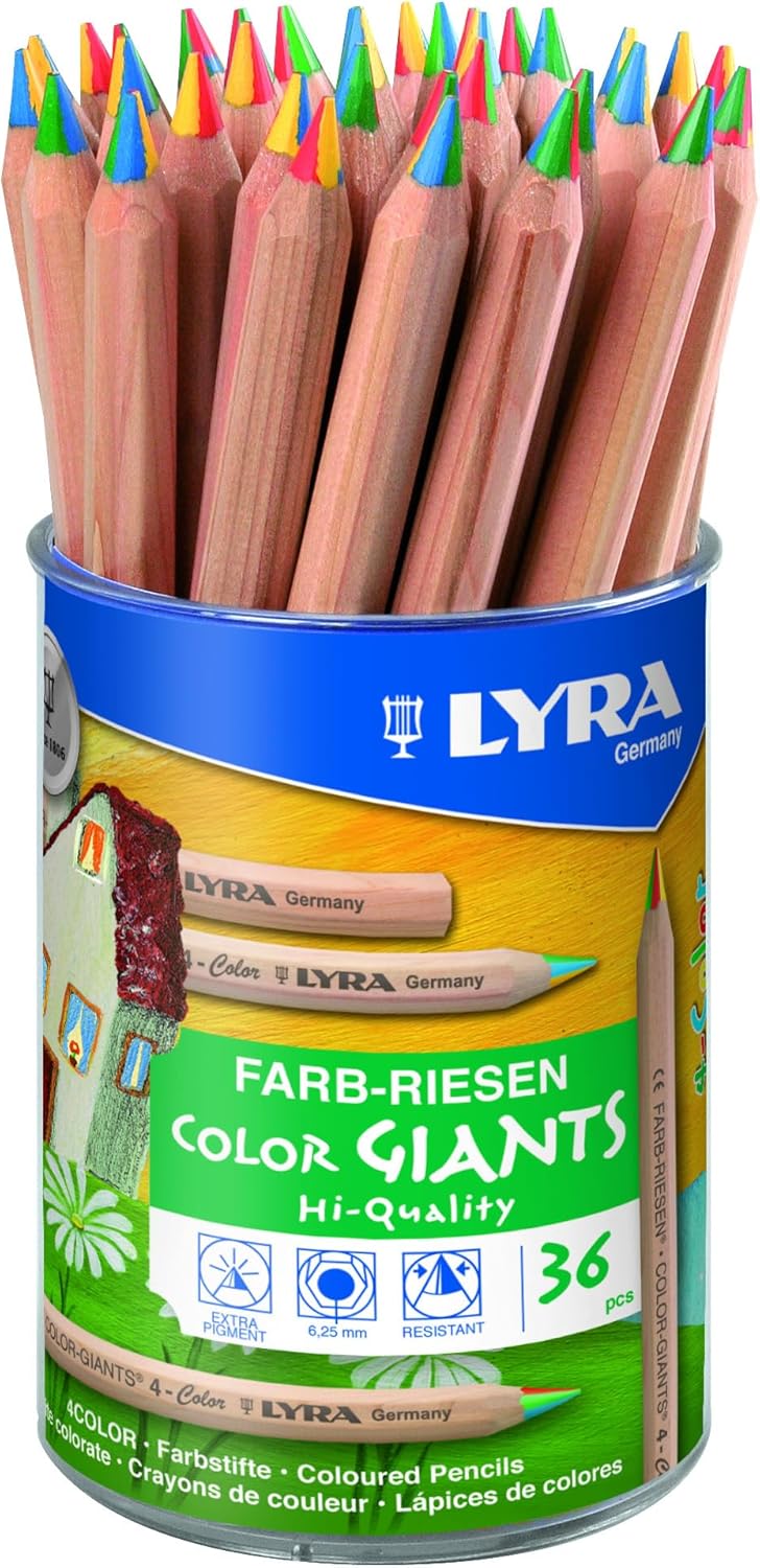 Lyra 3944144 lacquered Colour Giants; big colouring pencils; 144 coloured pencils in a wooden box; hexagonal format; 10 mm diameter. Intense colour thanks to the extra thick, break-resistant and highly pigmented lead. Lead diameter: 6.25 mm - Hexagonal colouring pencil - Pencil length: 17.5 cm - Pencil diameter: 10 mm - Thick colouring pencil: lead diameter: 6.25 mm - Box contents: wooden box with 144 coloured pencils Box contents: Lyra lacquered Colour Giants; hexagonal; wooden box containing 144 colouring pencils Manufacturer: Lyra Manufacturer No.: Lyra 3944144