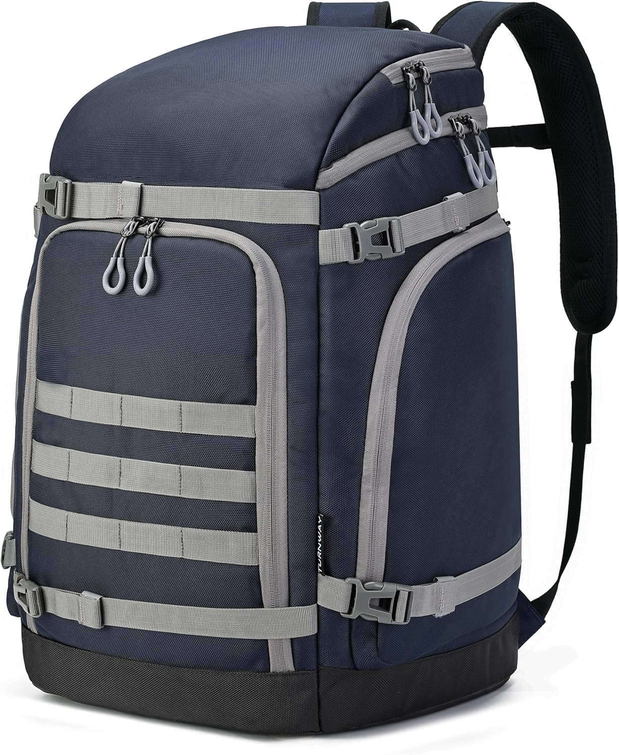 TurnWay Ski/Snowboard Boot Bag is a 50L backpack-style bag which can carry all your gear. ★TOUGH, WATER-PROOF MATERIAL TurnWay ski/snowboard boot bags/Skating bags are made of superior quality 1680D polyester. It is the popular and ideal lightweight material for ultra-strong and heavy duty bags. Double PU coated and polyester material are water-proof, stretching resistant, wear-resistant, durable for any weather conditions. The boot bag offers reliable, long-lasting strength. ★FUNCTIONAL ZONE & SPACIOUS DESIGN Three large main compartments can hold ski boots, helmet and clothing. Two sided pockets and front pocket are for other ski accessories. Lots pockets keep your items well organized. ★DURABLE, REINFORCED DESIGN Sided straps can hold skis with the other gear. Reflective Strip improve your safety during the night. ★COMFORT FEATURES This bag includes Massage Air Padded shoulder straps, SBS zipper and ergonomic carrying top and front handles. Convenient to lift and move. SPECIFICATIONS Dimensions: 33 x 33 x 48cm (LxWxH) 12.99 x 12.99 x 18.9inch Weight: 1.2kg / 2.6Ibs Color: Black, Grey, Black-orange, Grey-orange and Blue Material: High quality, durable and Water-proof 1680D polyester, double PU coated and anti-slip PVC SBS Zippers and ergonomic carrying top and front handles