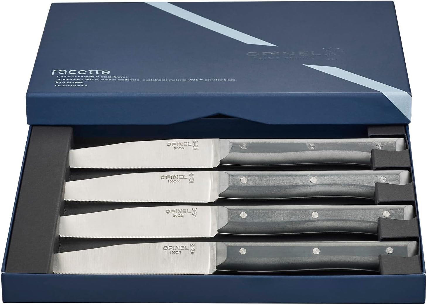 | Included Components | Set of 4 Facette Steak Knives, Blue Gift Box |