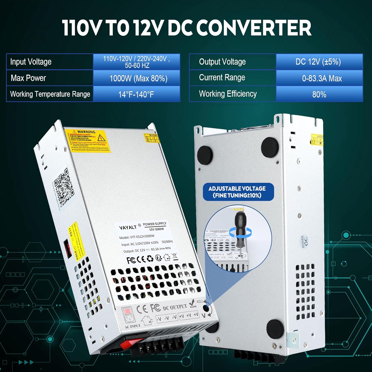 | Model Number | 12V-1000W (No power Cord) |